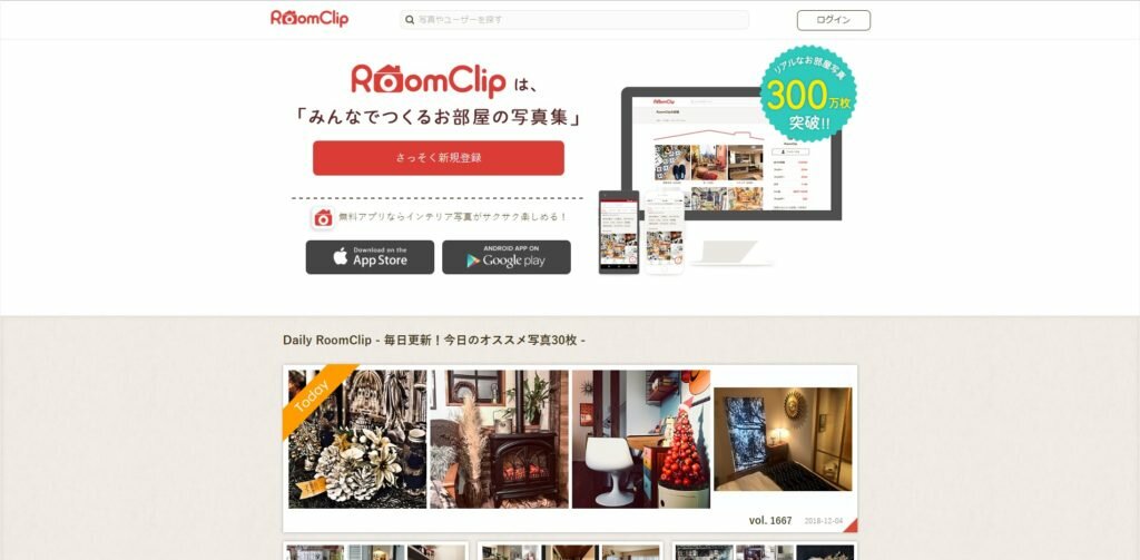 実際にあるお部屋のアルバムとして活用できるのがRoomClip。300万枚以上のお部屋が掲載されています。さらに、シーリングライト、レザーソファー、キッチンカウンターなどインテリアや家具が細分化してタグ付けされているので、見たいインテリアがある部屋に絞って様々な部屋のレイアウトを閲覧することができるんです。また、設置されている家具やインテリアの商品ページもリンクされており、オンライン購入も可能です。見本のような部屋ばかりですので、非常に参考になりますよ。